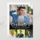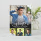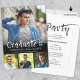 Modern graduation party invitation with a photo collage of four photos on the front with a white brush stroke GRADUATE title on the front and PARTY on the back with your graduation party invitation details. PHOTO TIP: Pre-crop/size your photos into a similar shape as shown or have the subject in the middle BEFORE uploading for fastest, easiest results. CHANGES: Change the black background colour and/or change the text font style, size, colour or placement by clicking on CUSTOMIZE FURTHER. Contact the designer via Zazzle Chat or makeitaboutyoustore@gmail.com if you'd like this design modified, on another product or would like coordinating items.