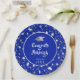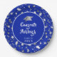 Modern royal blue and silver stars and mortarboard design paper plates personalized with your custom text in an editable handwritten brush script (the sample says Congrats Name) and class year. Contact the designer via Zazzle Chat or makeitaboutyoustore@gmail.com if you'd like this design modified or on another product.