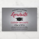 Add a personalized touch to college or high school graduation party decorations with these elegant red, gray and black mini split sparkling wine bottle labels. Design features a faux brushed stainless steel background, stylish modern typography, handwritten style script calligraphy, and a customizable message reading "Congratulations to our Graduate". Text at the bottom includes class year, school name, and optional lines for degree, beverage type, or other info. All text is simple to customize. Please note that gold is printed color, not metallic foil. These labels make a stylish graduation party drink idea and an elegant addition to the graduate's special day celebration. Cheers!