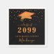 Elegant personalized black and orange graduation party paper napkins featuring an faux metallic orange graduation cap, gold confetti, fancy script typography and class year with CONGRATULATIONS and your graduate's name. Make background colour and text font style changes in EDIT. ASSISTANCE: For help with design modification/personalization, colour change, transferring the design to another product or would like coordinating items, contact the designer BEFORE ORDERING via Zazzle Chat or makeitaboutyoustore@gmail.com.