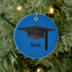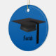 A classic graduation cap on blue background. Personalize with graduate's name, school name, and year. Choose your own background colour.
