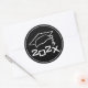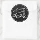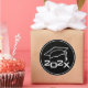 These black 3" round stickers feature a graduation mortar board cap and your class year in chic white lettering. Also available in a smaller size. MATCHING items in our collection.