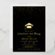 Gold graduation cap and confetti Class Of 2026 black formal gold foil invitation. Honor the achievements of the Class of 2026 graduate with these elegantly crafted real gold foil black invitations. They are adorned with a gold graduation cap and confetti of real gold foil. Utilize this invitation to formally gather family and friends to celebrate this important milestone, reflecting the graduate's dedication through this exquisite and fitting design.