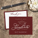 Dark maroon flat, two-sided thank you note cards feature your name, class year, a graduation cap, and the word Graduate in chic white lettering on the front. There is plenty of room on the back to write a handwritten message or compose a message to be printed. MATCHING items and more colours in our collection.