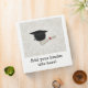 Custom Personalized gifts and party favours with graduation cap mortarboard and tassel in black, with a rolled-up diploma with red ribbon, and a canvas look background. Customize it with your name, school or other text.