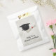 Custom Personalized gifts and party favours with graduation cap mortarboard and tassel in black, with a rolled-up diploma with red ribbon, and a canvas look background. Customize it with your name, school or other text.
