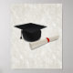 Custom Personalized gifts and party favors with graduation cap mortarboard and tassel in black, with a rolled-up diploma with red ribbon, and a canvas look background. Customize it with your name, school or other text.