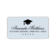 Elegant, light dusty blue address labels featuring a black or custom colour graduation cap and your name in a romantic calligraphy script font with the address below. Stylish and classy design.