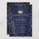 Graduation Cap,Glass Diamonds Blue Graduation Invitation