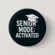 A graduation cap and the quote: Senior Mode: Activated. Black background, white text. You can add your school colour in the design tool.