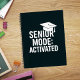 A graduation cap and the quote: Senior Mode: Activated. You can add your school colour in the design tool.