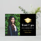 A black, white and gold custom photo graduation design to say thank you to all those that sent their congratulations and celebrated the achievement of the graduate who graduated from high school or college. The elegant grad design is great for thanking those who sent congrats and attended the graduation party. Replace the image with a vertical picture of the graduate. The calligraphy script text can be customized and personalized with the name and class of the graduate. You can change the font colour, font size and font type. You can also change the colour of the thank you heart graphic and graduation cap graphic using the Design Tool. The special appreciation design is yours to customize and personalize as you wish. The design can be transferred to other products.