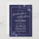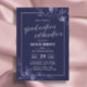 Graduation Celebration Elegant Navy Blue Botanical Invitation