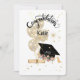 Spread the joy on this special occasion with a modern and unique celebration card! Featuring shimmering confetti balloons personalized with your name, dazzling stars, a sleek black hat adorned with the year, and an elegant beige scroll alongside. Perfect for making memories that shine