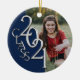 Graduation Class 2021 Photo Blue Silver Ceramic Ornament