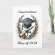 Celebrate the achievements of the Class of 2024 with this elegant graduation congratulations card. Featuring a classic design with a cap and diploma surrounded by a traditional laurel wreath, the card is accented by soft and subtle flowers. The front proudly declares, "Congratulations! Class of 2024." Inside, a heartfelt message honours the graduate's hard work and dedication, wishing them a future filled with success and happiness. Perfect for any graduate, this card is a timeless way to commemorate their milestone and share in their joy