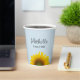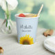 Class of 2024 Graduation party paper cups, with a yellow sunflower bloom design and black script lettering. Set on a blue background, you can add your own text. This cute item makes a fun addition to your favourite graduate's celebration.