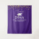 Modern photo backdrop with an editable purple background and gold glitter confetti border, handwritten script CLASS OF, white mortarboard and class year personalized with your text such as Congratulations Name, the name of your school, a class motto, etc. The purple background is editable to change to your school or party theme colours. Use as a photo prop at a graduation ceremony or graduation party. Contact the designer via Zazzle Chat or makeitaboutyoustore@gmail.com if you'd like this design modified, on another product or would like coordinating items.