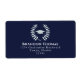 This design features a graduation graduate grad return address, a classic traditional laureate mortarboard, simple minimalist minimal laurel leaves, for high school or college senior, with school colours navy blue template, for a graduation grad party envelope seal, a graduation invitations announcement seal, a classy elegant graduate laurel leaves, a simplistic simple clean modern style, a simple basic typography style