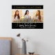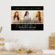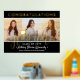 Add an elegant personalized touch to college or high school graduation party decorations with a 3 photo collage 18"x24" black and gold foil print. Pictures and all wording on this template are simple to personalize. (IMAGE PLACEMENT TIP: An easy way to centre a photo exactly how you want is to crop it before uploading to the Zazzle website.) The black, white and gold design features real metallic foil, chic black handwritten style script calligraphy, stylish modern minimalist typography, and three photos of your choice, such as senior pictures or images from the commencement ceremony. This party sign is an elegant way to celebrate the special day. Congratulations to the graduate!