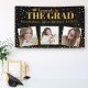 Celebrate your Graduate with this high quality durable banner featuring 3 photos and her name, school and class of year set against a fun, festive and trendy black background accented by faux gold glittery confetti and a Grad cap. Hang this sign in the house, from the balcony, garage, between two trees, etc. Fun, festive and generous in size, it will certainly make a statement and is a great way to congratulate your grad and welcome your guests to the graduation party.