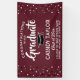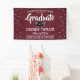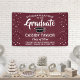 Add a personalized touch to college or high school graduation party decorations with a custom "Congratulations Graduate" maroon, white and black banner. All text on this template is simple to customize to include name, class year, school, degree, honors, inspirational quote, or other wording of your choice. The colors and font styles can be changed with the Zazzle design editor tool. The modern design features a maroon red background, black mortar board cap, festive cascading confetti dots, stylish script calligraphy, and elegant classic typography. This large graduation party sign can be hung on a wall to welcome guests to the celebration or used as a fun and stylish photo booth backdrop. Congratulations to the graduate!