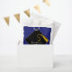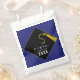Creative graduation congrats party favours gift featuring classic black cap and gold tassel on a royal blue background. Edit text to add senior class year.