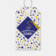Creative graduation congrats gift tag and grad party favours, featuring blue cap with a gold tassel on confetti background. Edit text to add grad's name and senior class year.