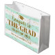 Celebrate your Graduate with this festive gift bag featuring a fun, trendy mint green and white striped background and your custom text, accented by faux gold glittery confetti and a gold Grad cap. Perfect for a high school or college graduation gift.