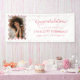 Celebrate your graduate in style with this elegant Graduation Congratulations Pink Bow Photo Banner. Featuring a delicate pink bow pattern in the background, paired with a customizable photo and text design, this banner is perfect for adding a personal touch to graduation parties. The soft pink hues and feminine details make it ideal for celebrating daughters, sisters, or friends on their special day. Personalize the name, graduation year, and school for a truly unique decoration. Made with high-quality materials for both indoor and outdoor use.