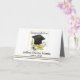 Custom graduation congratulations greeting card for a special graduate featuring a cap and diploma in black and gold hand sketched with ink and painted with watercolor accented with pinstripes. A keepsake card personalized with the name and date of graduation. On the inside is a coordinating shade of elegant grey with text you can edit to fit your needs.