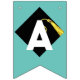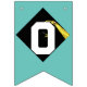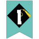 Unique graduation party bunting flags decoration featuring congratulations featuring black and gold cap on blue teal background for the grad.