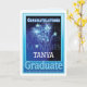 Making it to graduation is like a roller coaster ride. Full of ups and downs and the occasional scream! This card proudly honours that ride. Showcasing the graduate's name and turning this graduation card into a unique keepsake. Because, let's face it, they've survived exams, all-nighters, and likely more stress than a cat at a dog park. This festive card reads, "Congratulations, Graduate," and features an area to personalize the graduate's name. Blue stars and fireworks will surround their name. Making the graduate feel like a star. The inside's framed in light blue and also customizable. You can keep or change the greeting. Add the graduates' and the sender's names for a personal touch. Send this graduation card adorned with fireworks to celebrate their ride. © TANITU by Tanya Lumere