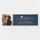 Graduation congratulations simple modern navy blue elegant script party announcement photo banner design.