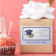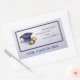 An image of a graduation hat and diploma with a navy border on a soft grey-blue background is best to give to anyone celebrating graduation. Perfect for the graduates and remember the past as you enter the new stage of life.