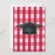 You will love this watercolor red and white chequered gingham plaid background overlaying a wood slice with boiling pot with crawfish, goodies and a graduation hat.