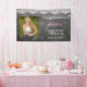 Graduation banner with your favourite photo. Fun chalkboard with chalk font, white lace and pink confetti. Personalize with your graduate's name, school, and year of graduation.