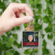 Custom photo and year graduation keychain in elegant and modern crimson red, black and white classic floral damask pattern. Add your own photo for a unique grad keepsake or gift.