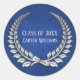 Graduation Diploma Silver Laurel on Blue Classic Round Sticker