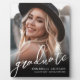 This simple and minimalist graduation easel table top sign or plaque features a full-page photo with a sleek and modern layout. “Graduate” is displayed in elegant handwritten script, with the graduate’s name, “Class of 2026,” and the school name below in classic fonts for a clean and polished look.
