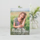 This custom photo graduation thank you card features a photo on the front with the word "Thank You" in white script with your name to personalize. Add a message of thanks on the back of the card and signature accented by a black graduation cap on white. Designed by artist ©Susan Coffey.