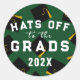 Creative graduation envelope seals, party favour labels or grad gift stickers featuring black and gold graduation caps on green background.