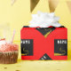 Black and gold graduation cap on a red background. Edit text to add grad's name and the year.