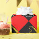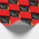 Personalized graduation gift wrap featuring classic black cap design on red background. To customize for your favourite grad edit text to add his or her name.