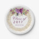 Beautiful personalized purple sparkle watercolor flowers and faux gold glitter confetti frame on white background Graduation party paper plates. If you need any assistance customizing your product please contact me through my store - via this page - and I will be happy to help. I have used artwork from: www.CreateTheCut.com. I have matching products in my store.