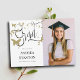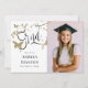 Looking for ideas for graduation announcements? A butterfly theme is feminine and, symbol of transformation, a perennial classic for graduations. The word GRAD in hand-drawn brush calligraphy and adorned with gold glitter butterflies (this is a digital effect, not real glitter or foil!) decorate this elegant, classic graduation announcement that is simple but sophisticated, timeless and elegant. The contemporary typography design is elevated by the gold hues and the minimalist layout. Customize every line of text. Perfect for a high school graduation for girls, for a college or university graduation at every level.