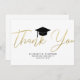 Send a modern thank you card to your family and friends for your graduation. This typography design features an illustration of a black graduation cap and diploma with a modern faux gold script that reads. "Thank You" in hand lettered script with your name, school, and class/year below to customize. The back of the card has a thank you message and signature you may personalize or delete. Designed by artist ©Susan Coffey.