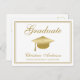 Graduation Gold Grad Cap & Script on White Party Invitation Postcard