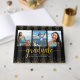 Let your favourite grad be proud, rejoice and always remember her milestone with this stunning keepsake graduation guest book. Stunning, modern, sparkly gold typography script overlays three custom photos on a black and dark grey striped background with gold dots. Personalize the custom text with your grad’s name, school, and class year. A customizable quote is on the back. Matching invites, thank you cards, cap toppers, napkins, plates and other graduation goodies are also available in this trendy and stylish collection. Guaranteed to preserve the cherished memories of this special occasion!