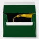 Creative graduation envelope featuring cap design in black and gold on green background. Edit text to add name of grad and return address.